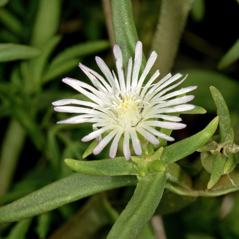 Le Delosperma est un genre de plantes de la famille des Aizoaceae, souvent surnommé pourpier vivace. Cette succulente rustique, capable de former de beaux tapis persistants, se distingue par ses tiges qui retombent gracieusement sur des rocailles ou en pots, se parant de fleurs éclatantes tout au long de l'été. Le genre regroupe des espèces aux formes variées, allant de plantes dressées à prostrées, voire retombantes sur des parois rocheuses. Certaines sont ligneuses, d’autres herbacées, et peuvent même développer de grosses racines tubéreuses. Les feuilles, charnues et souvent papilleuses, varient en forme, allant de plates et larges à linéaires ou cylindriques.