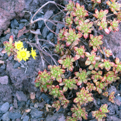 Aeonium sedifolium est une plante succulente endémique des îles Canaries, en particulier de Tenerife, La Palma et La Gomera. Elle prospère dans des habitats rocailleux et volcaniques, typiques des zones côtières et des pentes montagneuses basses, à des altitudes comprises entre 100 et 1 000 mètres. Cette espèce préfère les climats doux et secs, avec des hivers humides et des étés arides, caractéristiques du climat subtropical des Canaries. On la trouve souvent dans des fissures de roches ou sur des sols bien drainés, où elle bénéficie d’une exposition ensoleillée.
