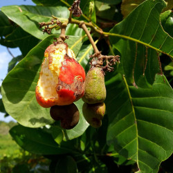 Anacardium occidentale, communément appelé anacardier ou pommier-cajou, est originaire d'Amérique du Sud, plus précisément du Brésil. Aujourd'hui, il est cultivé dans de nombreuses régions tropicales du monde, notamment en Afrique, aux Antilles, en Asie du Sud-Est et en Inde, où il est cultivé pour sa production de noix de cajou et de pomme de cajou. L'espèce s'adapte bien aux climats chauds et secs, supportant bien la sécheresse et s’adaptant à différents types de sols, à condition qu’ils soient bien drainés.