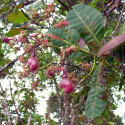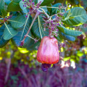 L’anacardier (Anacardium occidentale), ou pommier-cajou, est un arbre fruitier tropical originaire du Brésil, cultivé aujourd’hui dans de nombreuses régions chaudes du monde, où il est cultivé pour ses précieuses noix de cajou et sa pomme de cajou comestible. Mesurant entre 6 et 12 mètres de hauteur, il possède une cime étalée et dense. Résistant à la sécheresse, il s’adapte à divers types de sols bien drainés et tolère des précipitations annuelles variées. Pour une bonne fructification, il nécessite une alternance entre une saison des pluies de quatre à six mois et une saison sèche au moment de la floraison et de la maturation des fruits. Sa robustesse et sa capacité d’adaptation en font une espèce précieuse dans les régions tropicales et semi-arides.